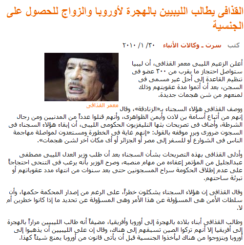 カッザーフィー、リビア人にヨーロッパへの移住と国籍取得の為の結婚を求める