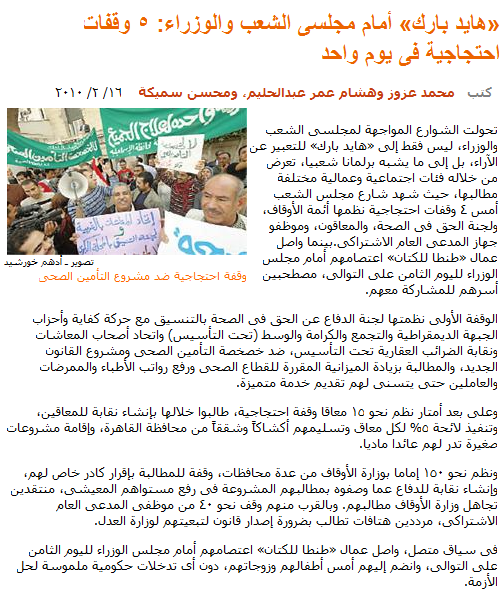 多くの県から集まった百五十名ほどのワクフ省のイマームが、彼ら固有の組織設立と保護協会設置を求め、生活水準向上のための計画を要求し、ワクフ省が彼らの要求を無視していることを批判した。その近くでは、四十名ほどの社会検事局職員が、彼らを公正省に帰属させる法律の必要性を訴えた。