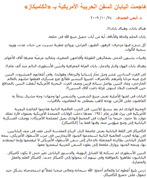 ヒロシマ・ナガサキはほとんどのエジプト人が知っていると思いますが、カミカゼという言葉までは知られているのかどうかわかりません。